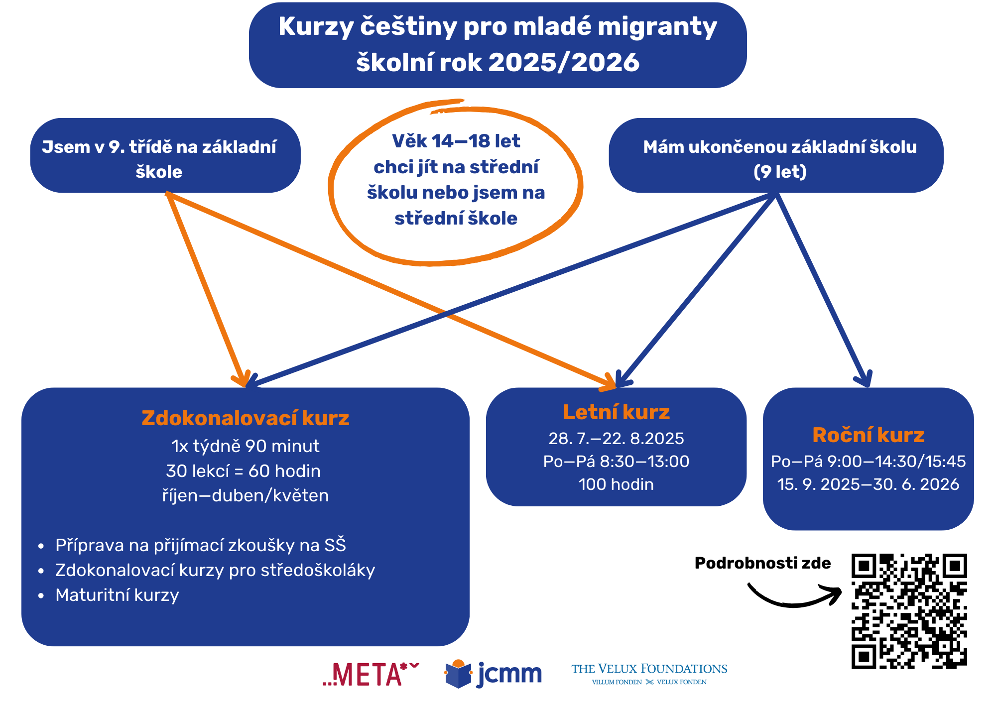 Pro cílovou skupinu připravujeme roční intenzivní kurzy češtiny, letní intenzivní kurzy a zdokonalovací jazykové kurzy. Podrobné informace k jednotlivým kurzům zde.